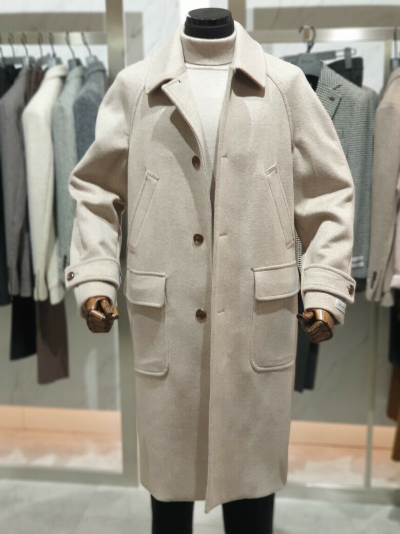 BON 23FW 베이지 캐시미어 헤링본 발마칸 코트 BN3WHA561BE