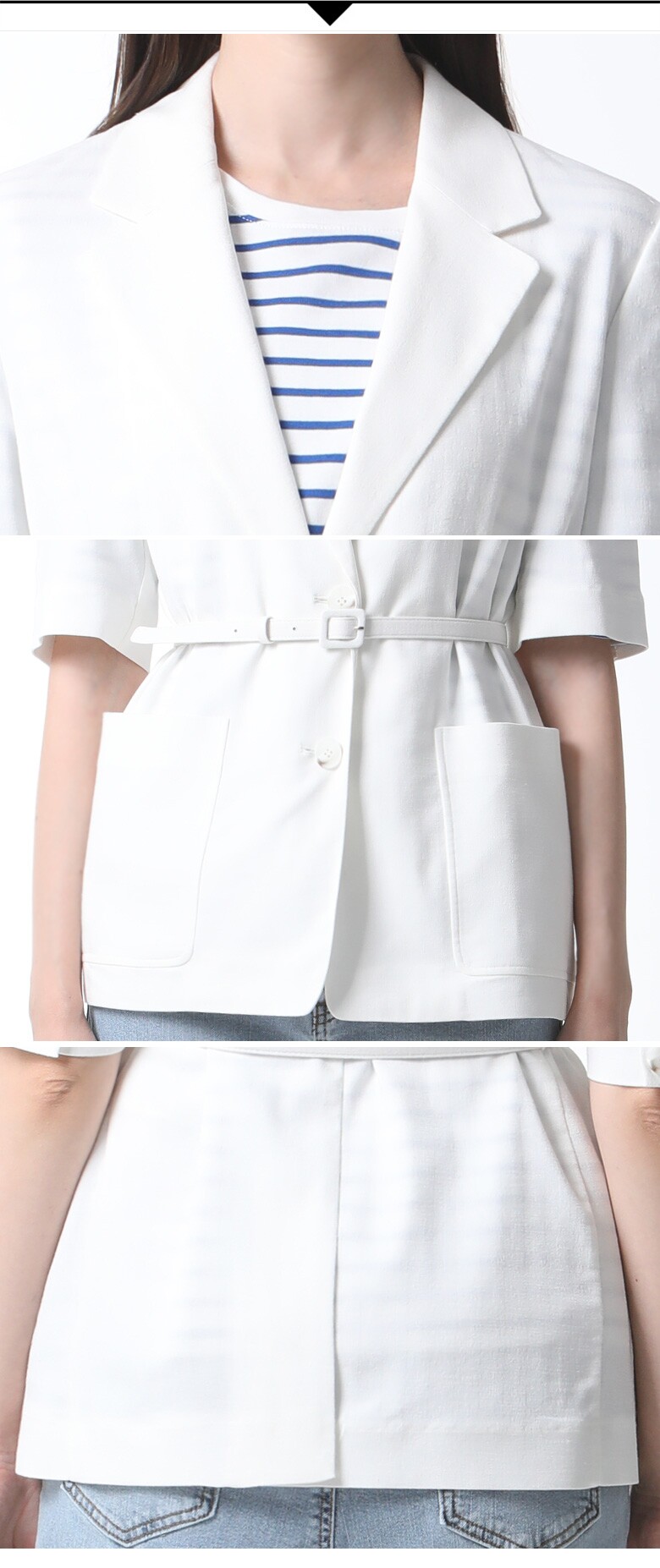 포함되어 있는 슬림 벨트로 포인트 연출이 가능한 반팔 자켓입니다. 브랜드만의 고급소재로 편안하고 우수한 착용감을 선사합니다. 차분한 컬러감이 세련미를 더해주며 전체적으로 각 잡힌 실루엣이 포인트인 아이템입니다.