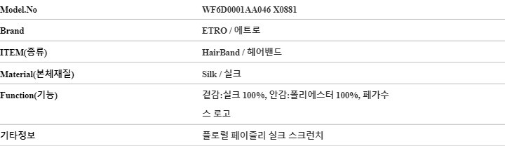 에트로 WF6D0001AA046 X0881 플로럴 페이즐리 실크 스크런치 여성 헤어밴드