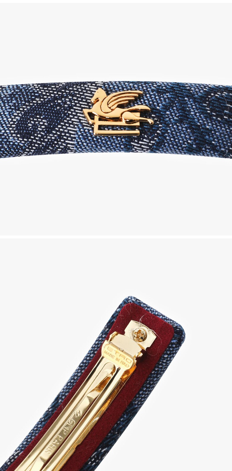 에트로 WF6B0003AD256 S9883 플로럴 페이즐리 자카드 데님 헤어핀 여성 헤어클립