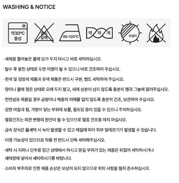 | 6. 세탁방법 및 취급시 주의사항 | 상품상세참조 |