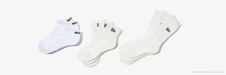 에센셜 삭스 3팩 컬렉션을 소개합니다. 크루 삭스와 앵클 삭스, 로우컷 노 쇼 삭스까지 3종의 길이별로 출시된 이번 삭스 컬렉션은 심플한 화이트 컬러로 데일리하게 활용하기에 안성 맞춤입니다. 뉴에라의 플래그 로고를 자수로 놓아 포인트를 주었으며, 노 쇼 삭스의 경우 뒷꿈치 부분 뉴에라 레터링 로고를 배치하였습니다. 발목과 발등 부분 밴딩으로 안정감 있는 착용감을 느낄 수 있는 에센셜 삭스와 함께 데일리룩을 완성해 보세요.