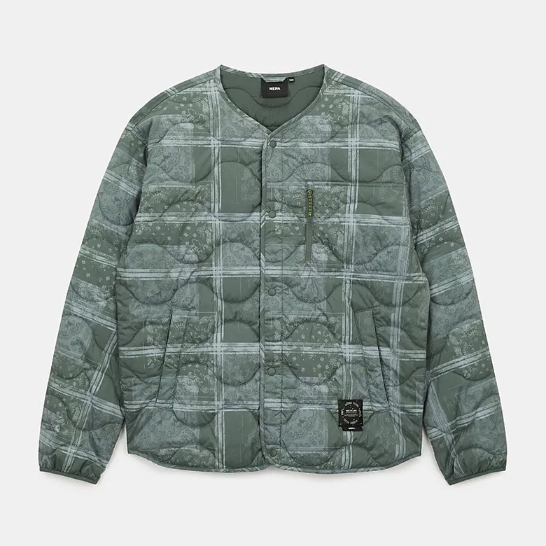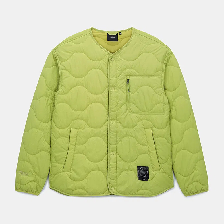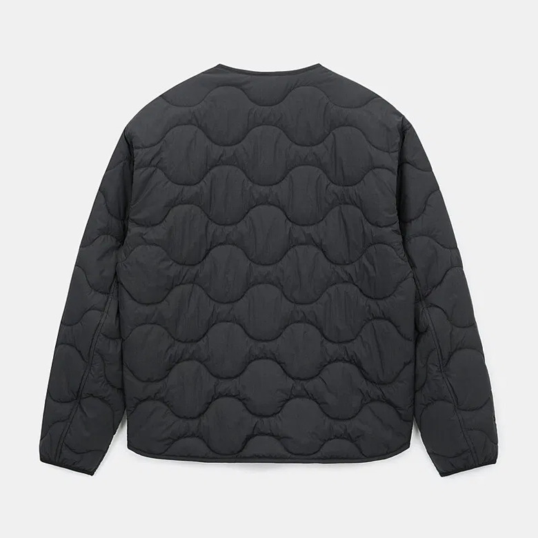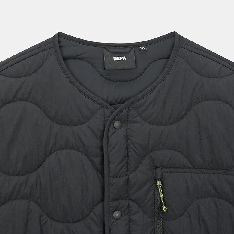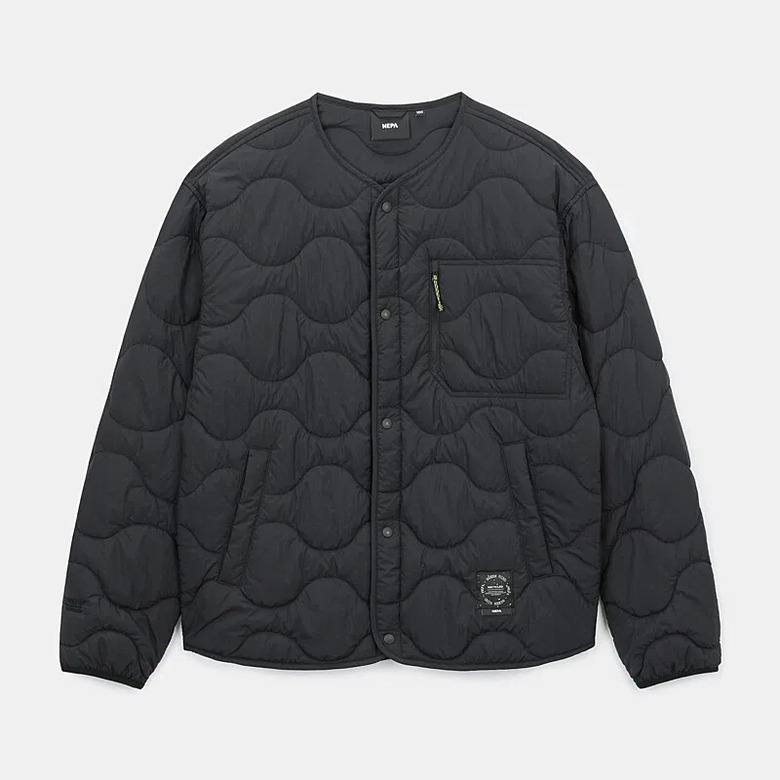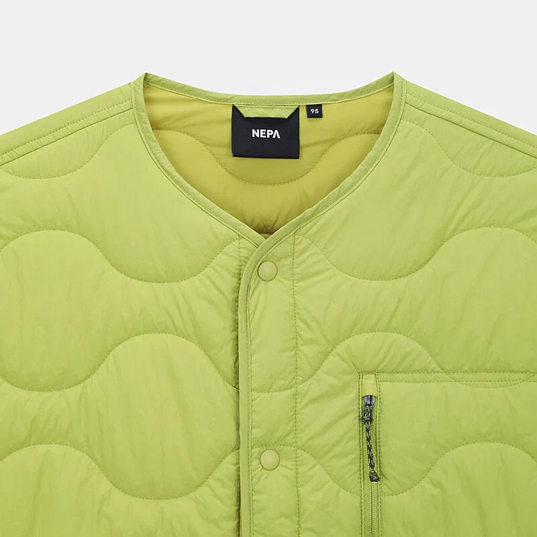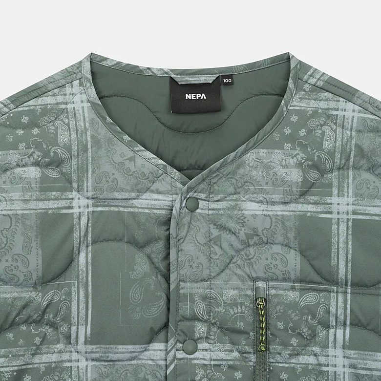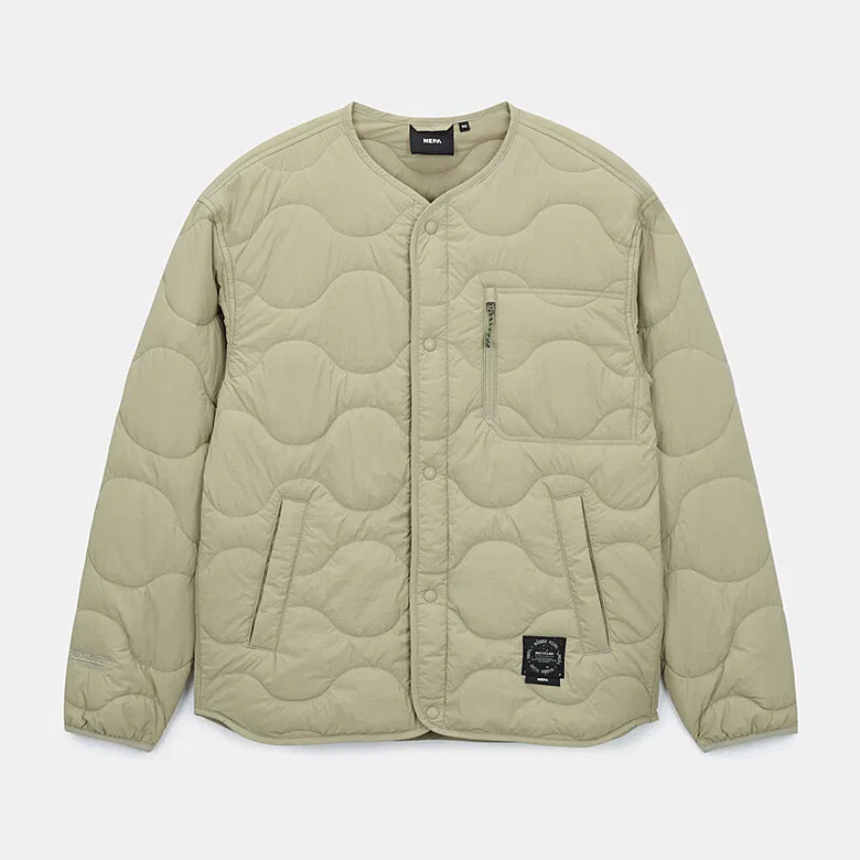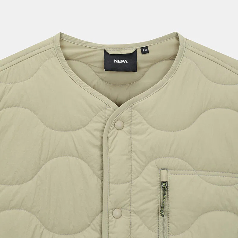 - 넥리스 형태의 자켓으로 단품 착용은 물론 미들 레이어로의 활용성도 높은 스타일