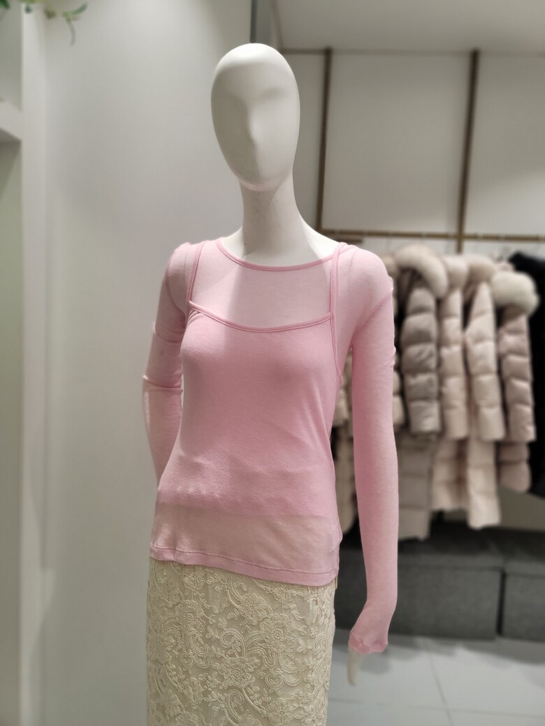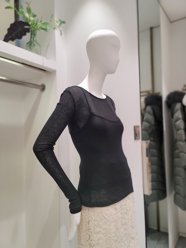 온앤온 라운드넥 나시레이어드 시스루 티셔츠 NJW4ME332