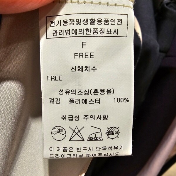 세탁방법 및 취급시 주의사항 : 드라이크리닝