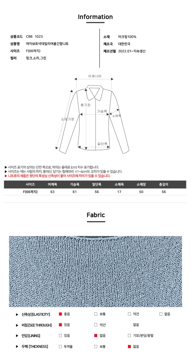 | 1. 제품 소재 (섬유의 조성 또는 혼용률을 백분율로 표시, 기능성인 경우 성적서 또는 허가서) | 상세이미지 참조 |