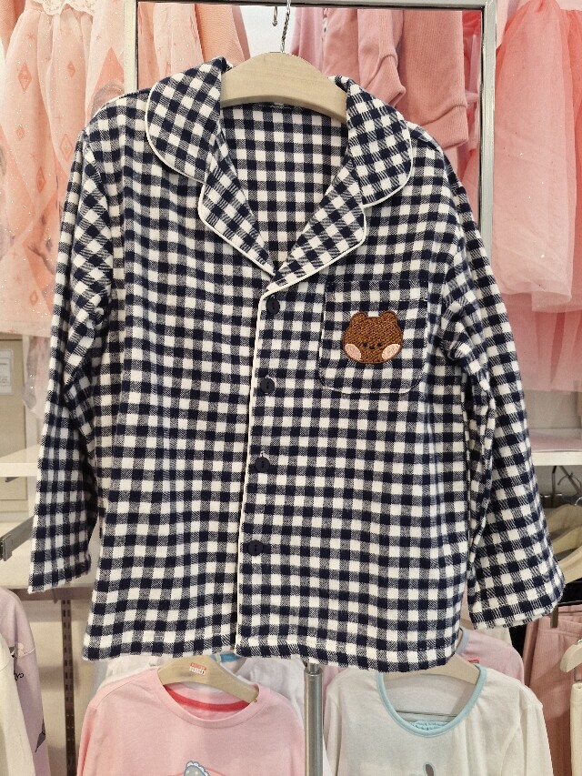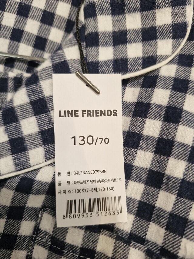 네이비체크의 고급스러운 바탕에 귀여운 라인프렌즈 캐릭터가 포인트로 들어간 편하고 활동성 좋은 잠옷입니다.