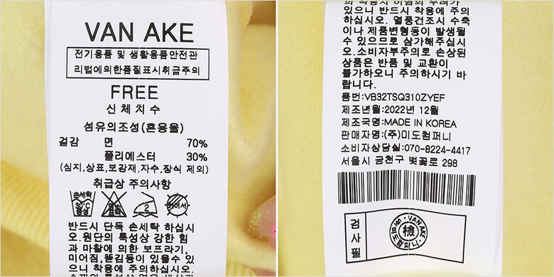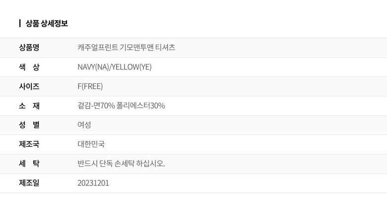 | 6. 세탁방법 및 취급시 주의사항 | 상세페이지 참조 |