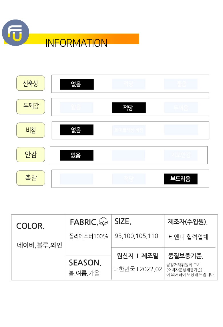 | 1. 제품 소재 (섬유의 조성 또는 혼용률을 백분율로 표시, 기능성인 경우 성적서 또는 허가서) | 상세설명참고 |