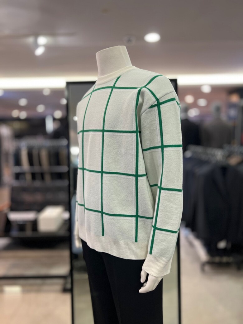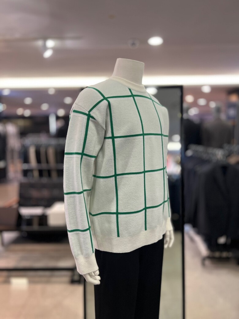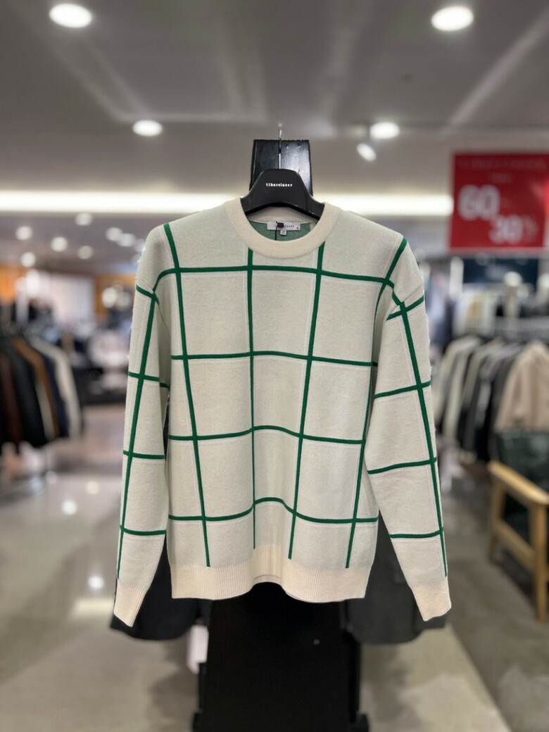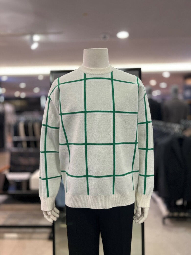 리버클래시 오프화이트 빅체크 라운드 니트 LKW51422