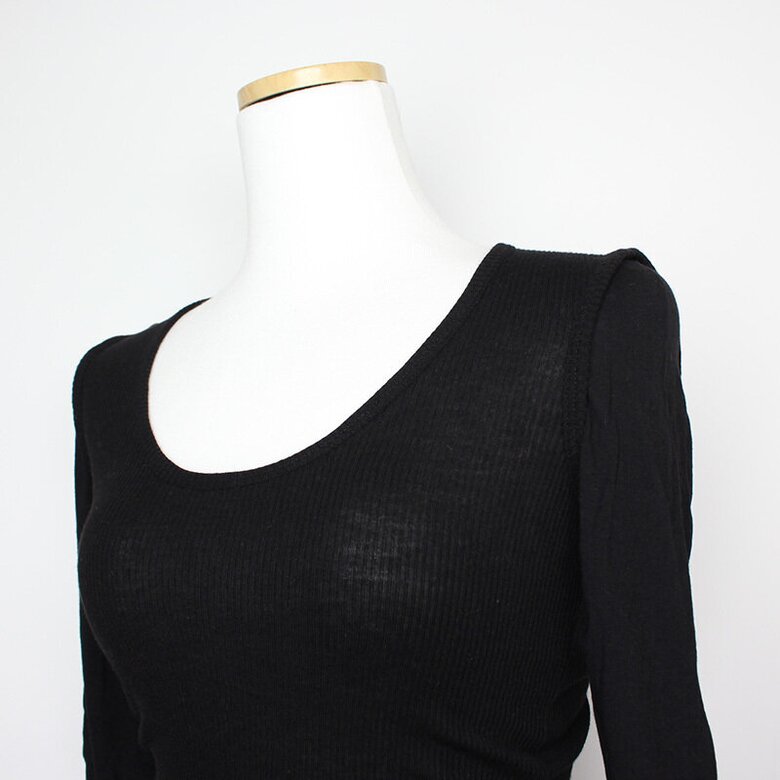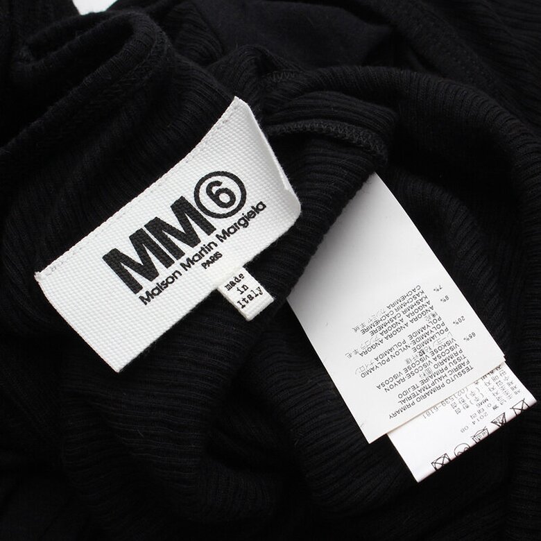 메종 마르지엘라 MM6 블랙 골지 상의를 선보입니다.
