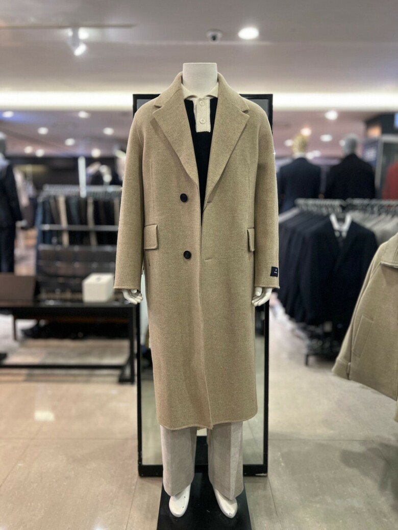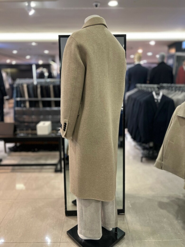 베이지 오버핏 핸드메이드 싱글 롱코트
