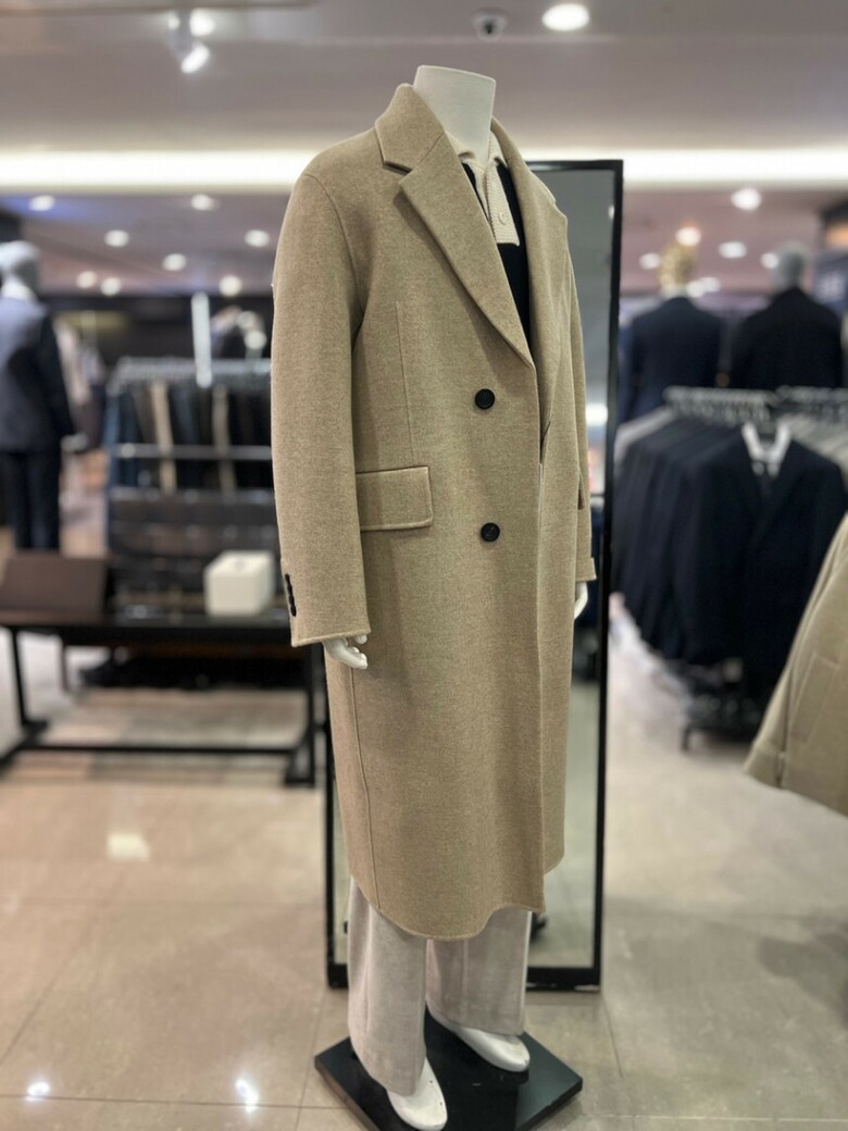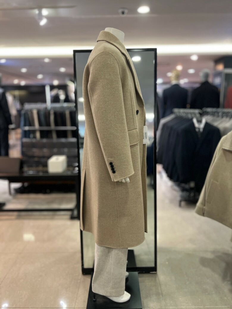 | 1. 제품 소재 (섬유의 조성 또는 혼용률을 백분율로 표시, 기능성인 경우 성적서 또는 허가서) | 겉감:모 78%, 캐시미어 5% / 안감:폴리에스테르 100% |