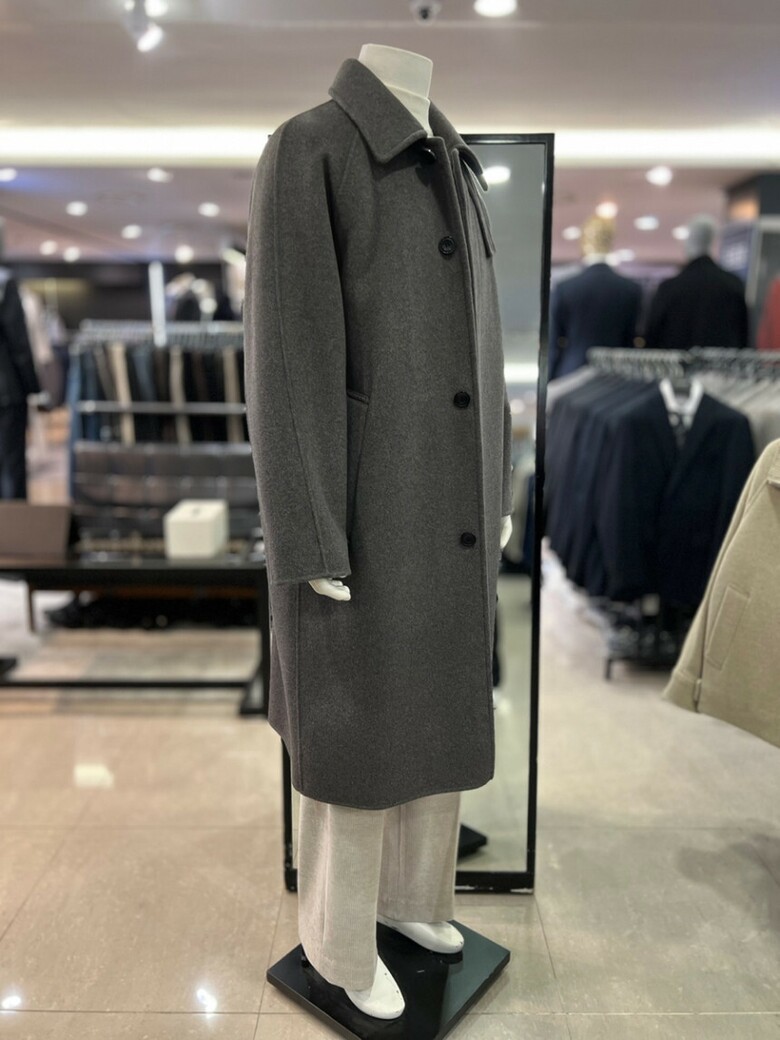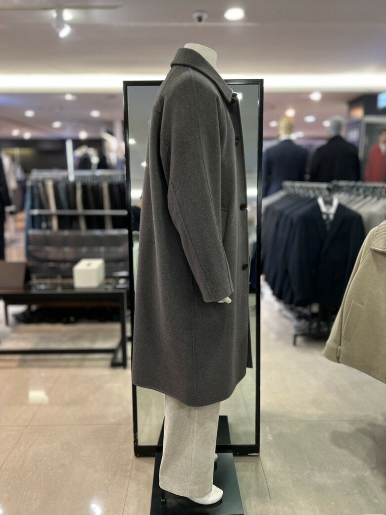 | 1. 제품 소재 (섬유의 조성 또는 혼용률을 백분율로 표시, 기능성인 경우 성적서 또는 허가서) | 겉감:모 78%, 캐시미어 5% / 안감:폴리에스테르 100% |