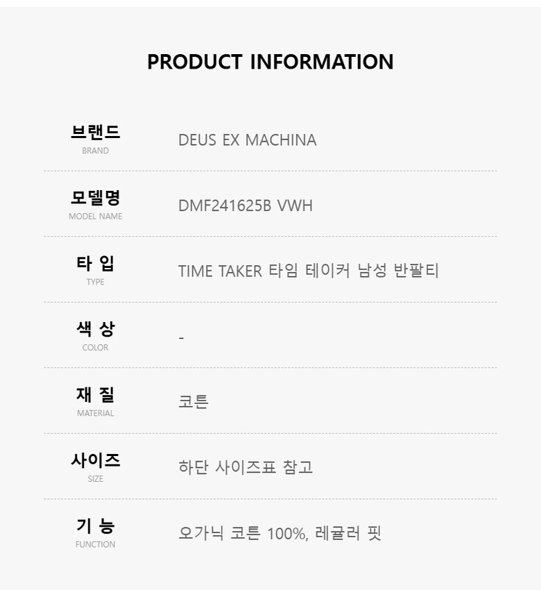 데우스엑스마키나 DMF241625B VWH TIME TAKER 타임 테이커 남성 반팔티