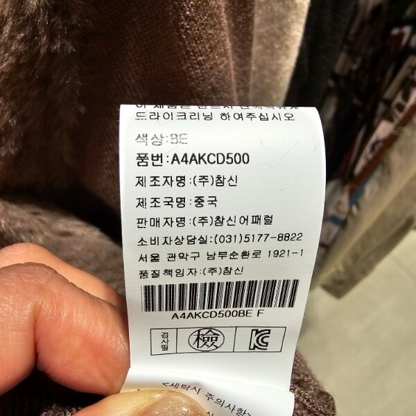 제조자 : (주)참신어패럴