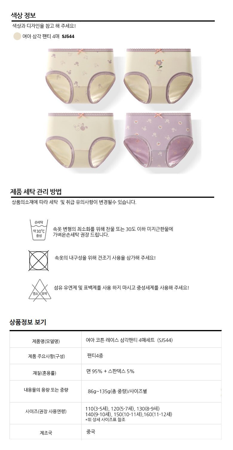 여아 코튼 레이스 삼각팬티 4매세트(SJ544)