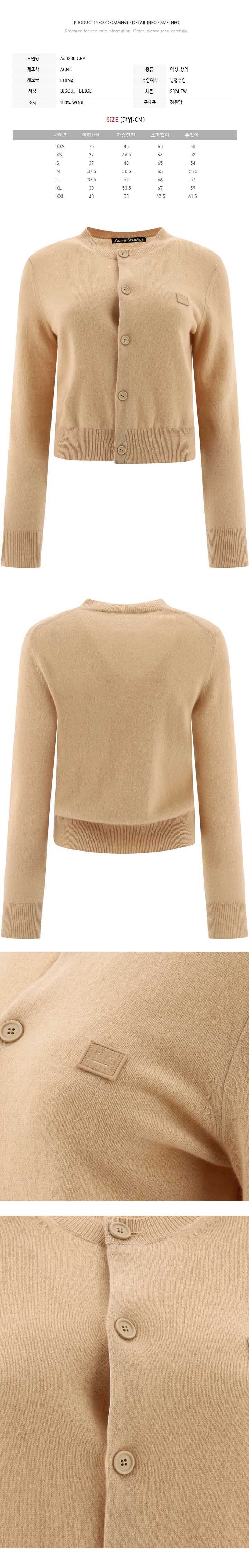 - #리본즈코리아 #7595006-638860428 #[명품] #아크네 #24FW #여성 #페이스 #패치 #울 #가디건 #비스킷베이지 #A60280 #CPA #의류 #니트/가디건