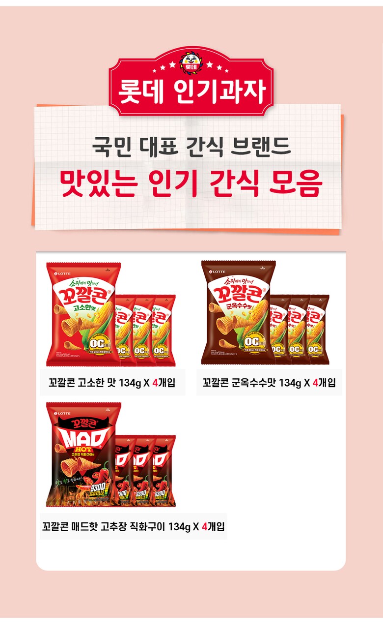 [롯데] 꼬깔콘 군옥수수맛 외 12봉