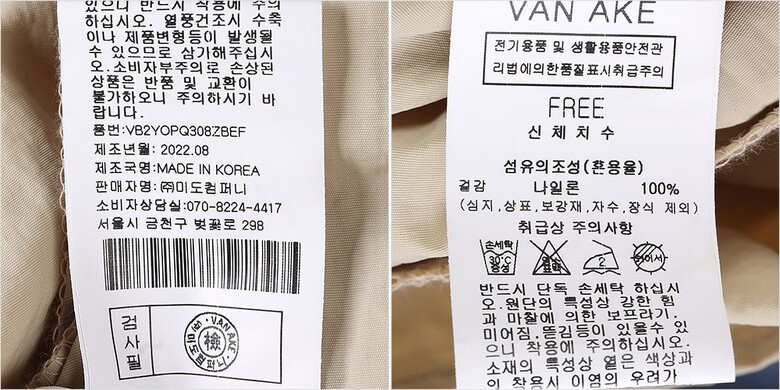 | 6. 세탁방법 및 취급시 주의사항 | 상세페이지 참조 |