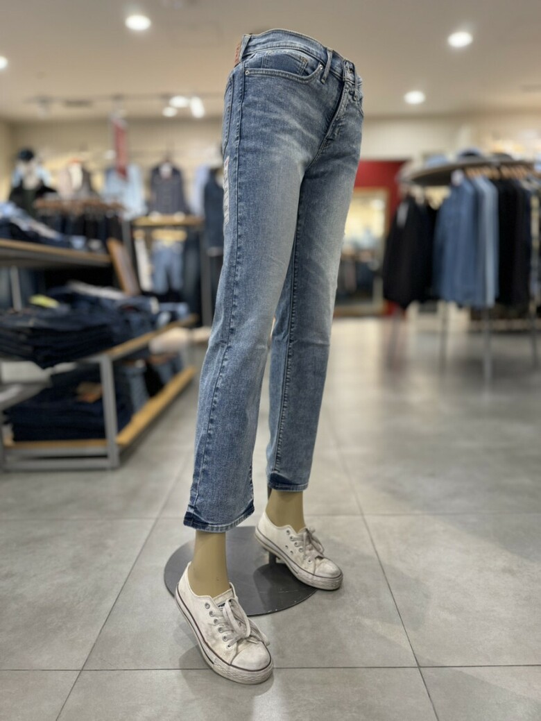 허벅지부터 발목라인까지 일자로 내려오는 일자스타일의 청바지입니다.
