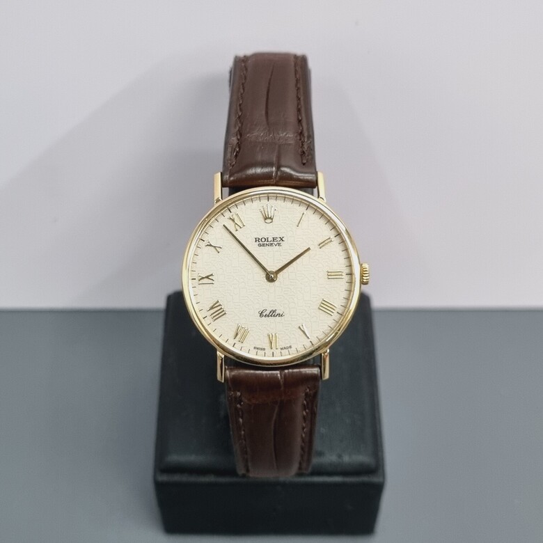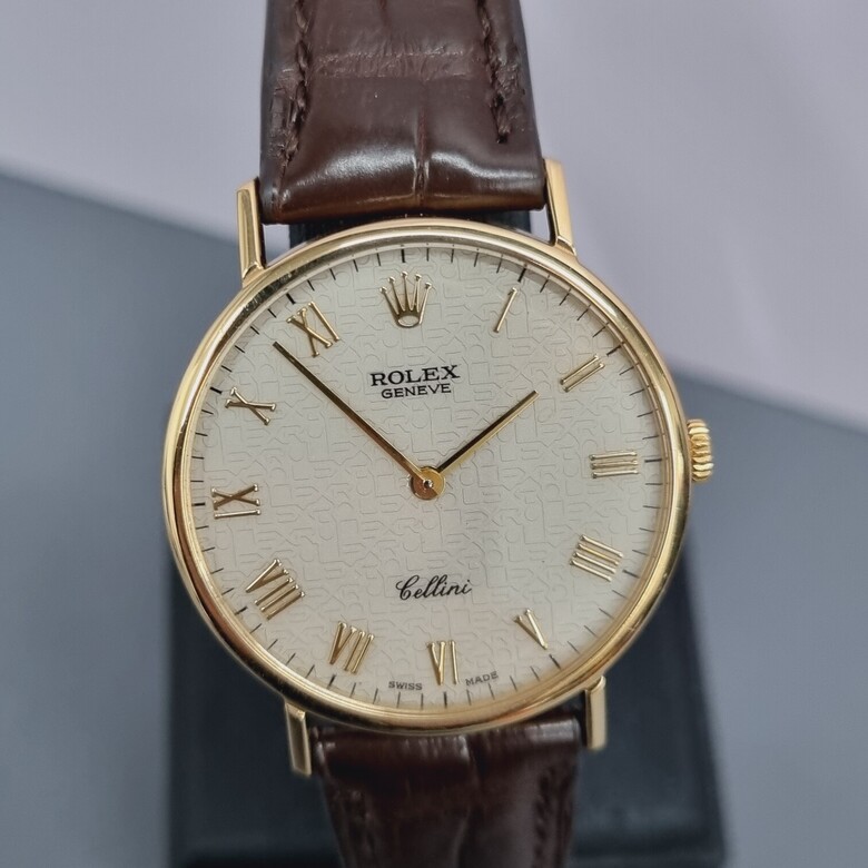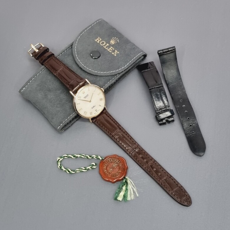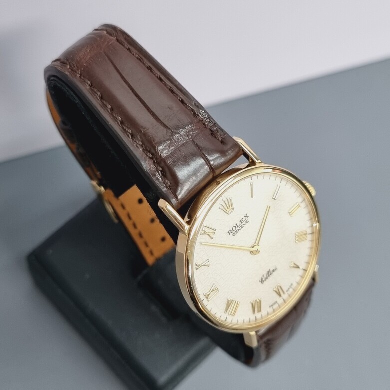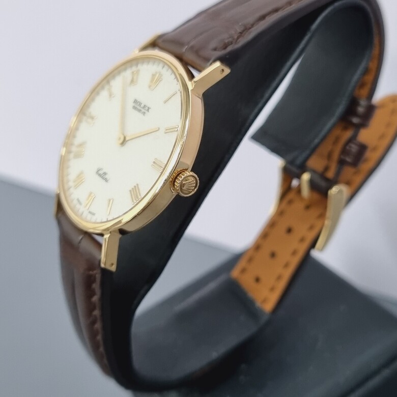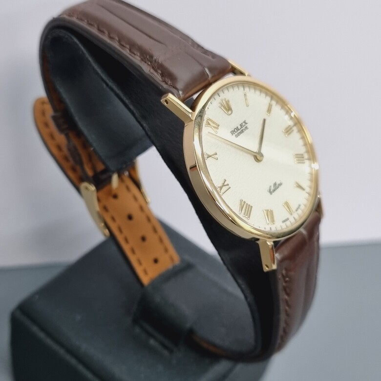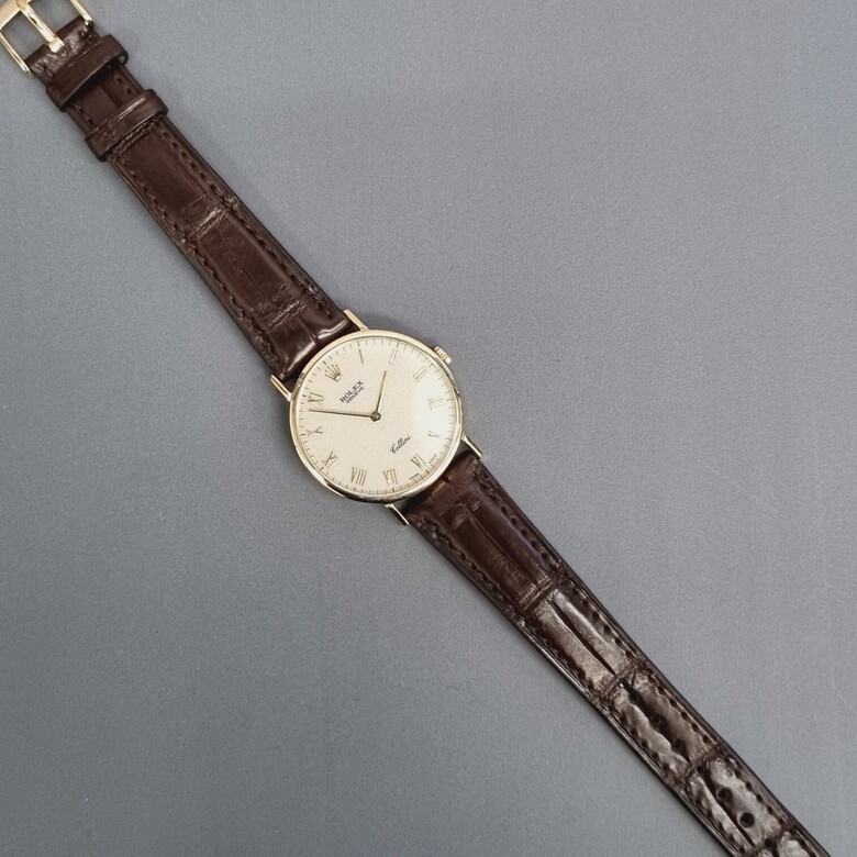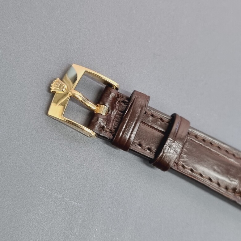 - 관리코드 : R175 - 브랜드 : 로렉스(ROLEX) - 제품명 : 로렉스 5112 셀리니 컴퓨터 다이얼 - 사이즈 : 32*32mm - 최대손목사이즈 : 19cm - 케이스 : 18k 골드 케이스 - 밴드 : 수제 악어가죽 밴드 - 버클 : 정품 18k 골드 버클 - 무브먼트 : 수동 구동방식 - 부속품 : 파우치, 레드메달, 여분 정품 가죽밴드(사용감있음) - 상태 : A+급