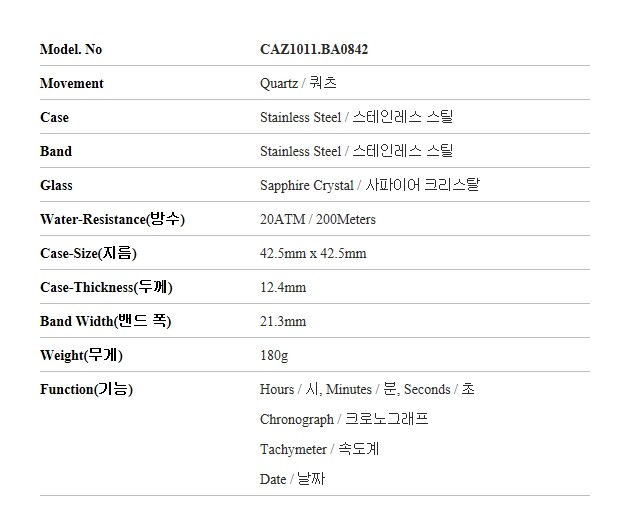 [명품] CAZ1011.BA0842 남성 메탈 시계
