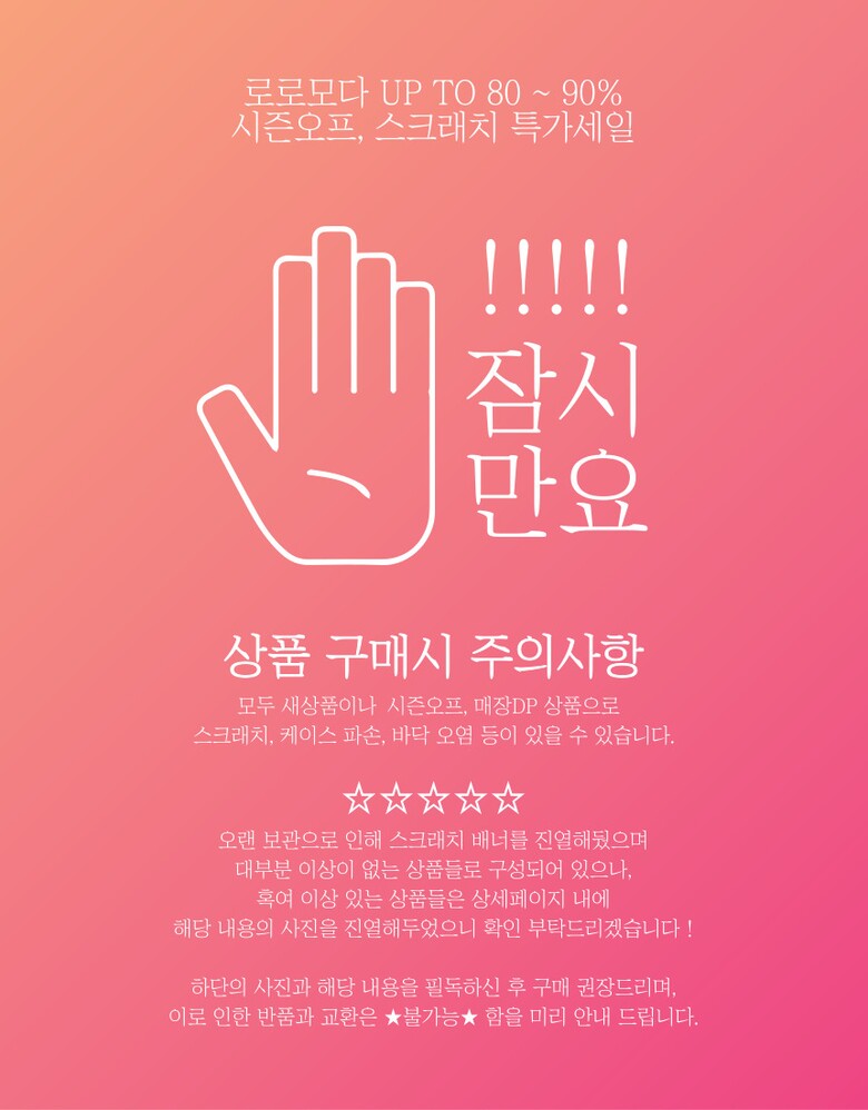 상품불량에 의한 반품, A/S, 품질보증 및 피해보상 등에 관한 사항은 소비자 분쟁해결기준(공정거래위원회 고시) 구매자가 미성년자인 경우에는 상품 구입시 법정대리인이 동의하지 아니하면 미성년자 본인 또는 법정대리인이 구매취소 할 수 있습니다. |