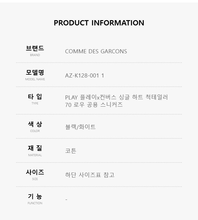 꼼데가르송 AZ-K128-001 1 (A08804C) PLAY 플레이x컨버스 싱글 하트 척테일러 70 로우 스니커즈