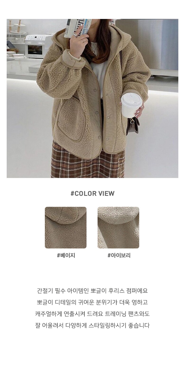 로트 뽀글이 버튼 후리스 후드 점퍼