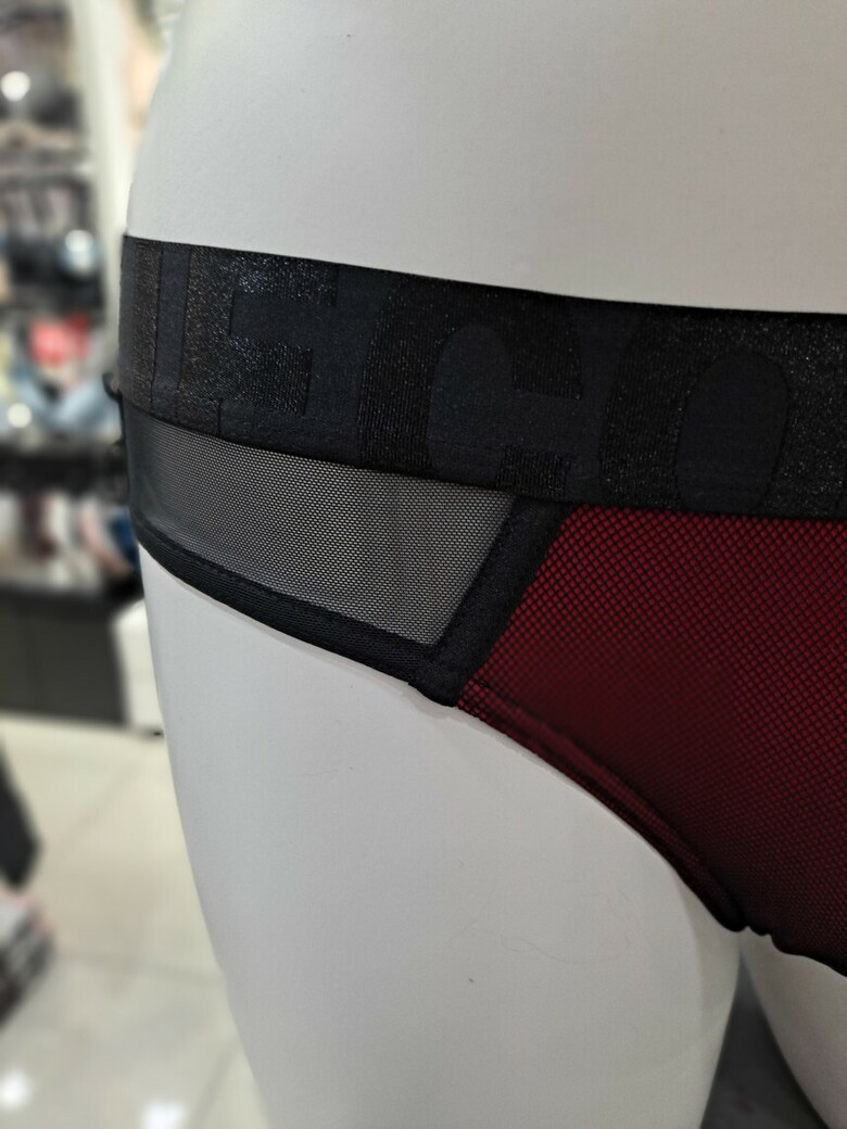 블랙컬러와 레드컬의 매치가 매력적이며 치콜라인이 돋보이는 오픈힙스타일의 섹시한 제품
