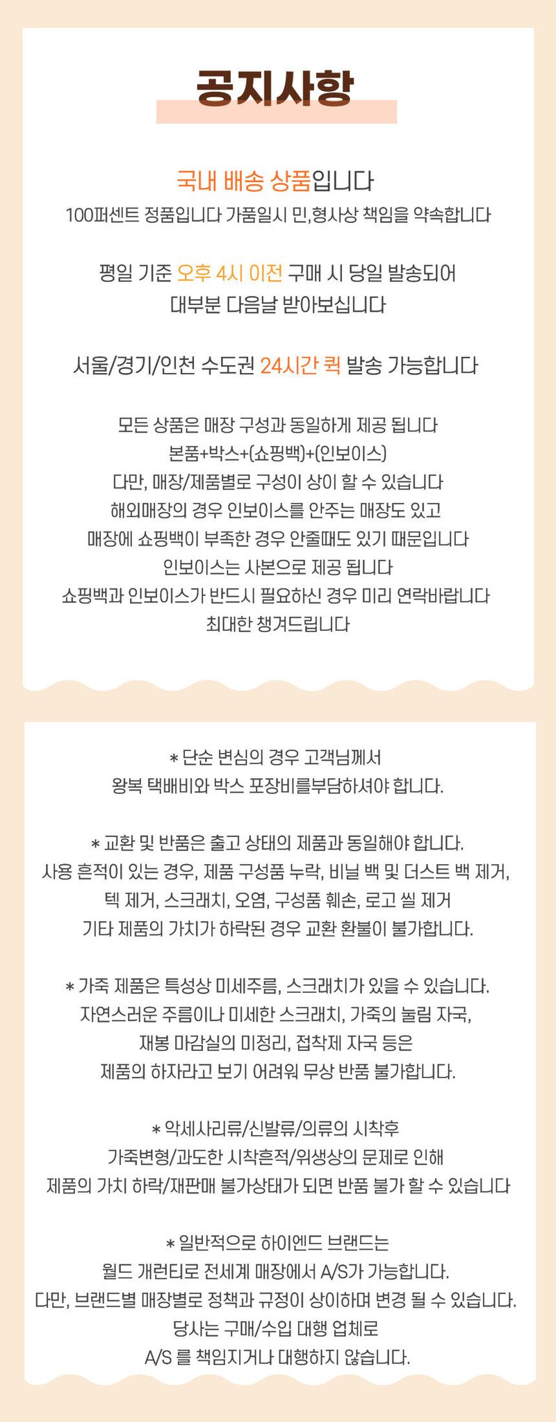 반품 유의사항