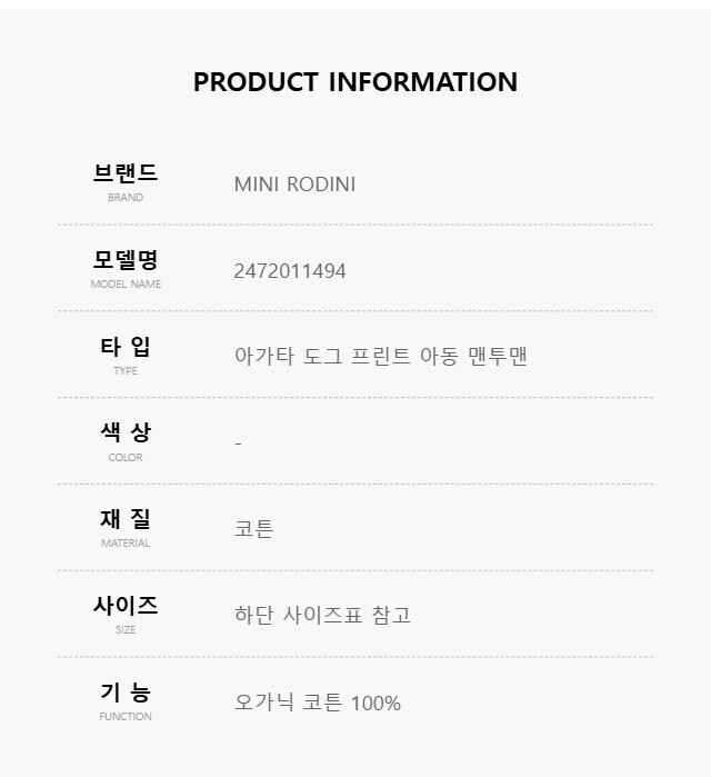 미니로디니 2472011494 아가타 도그 프린트 주니어 맨투맨