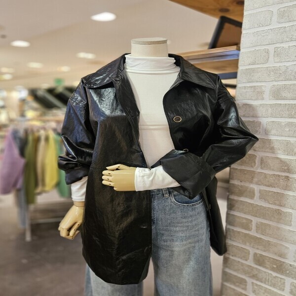 LK31E3JK505X_인조 가죽 롱 자켓