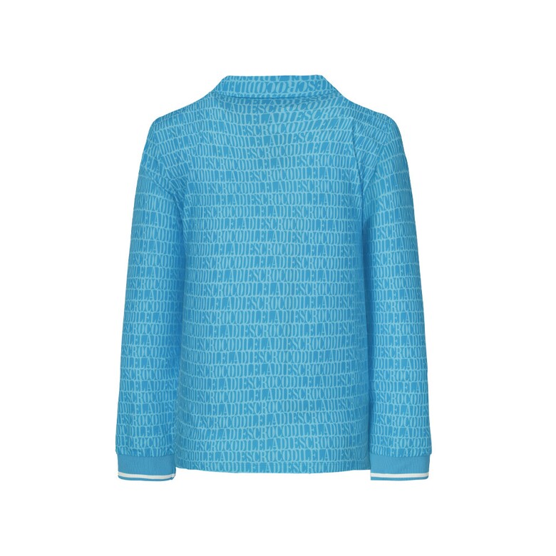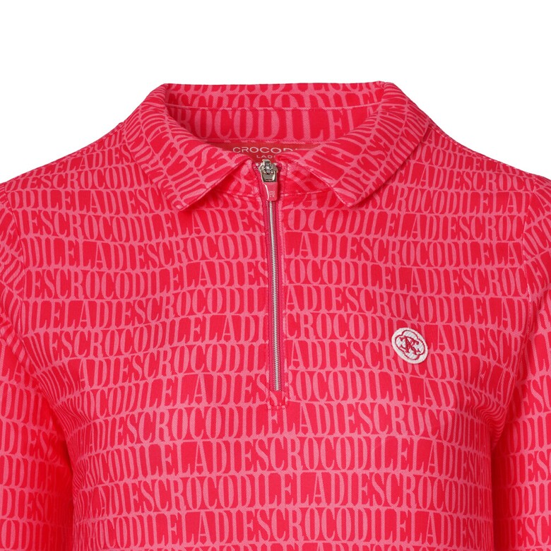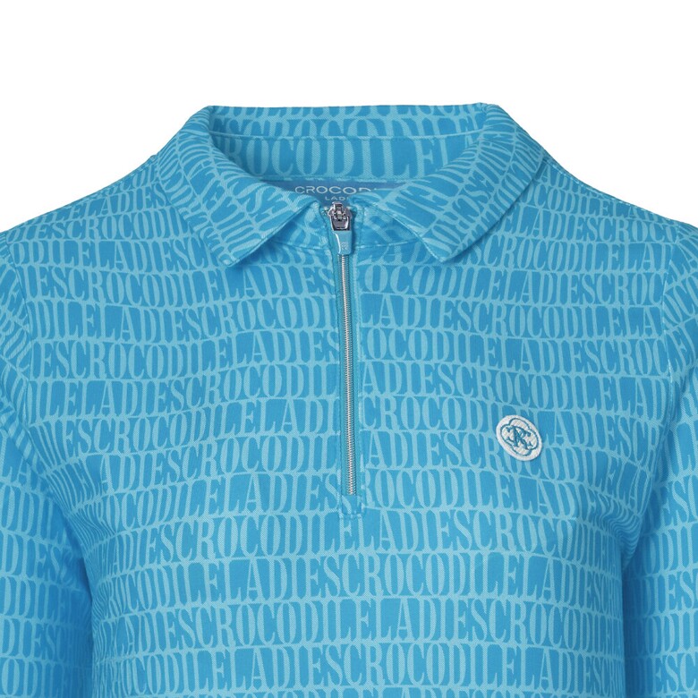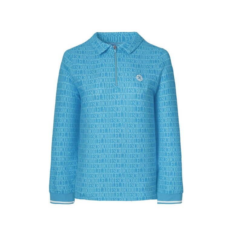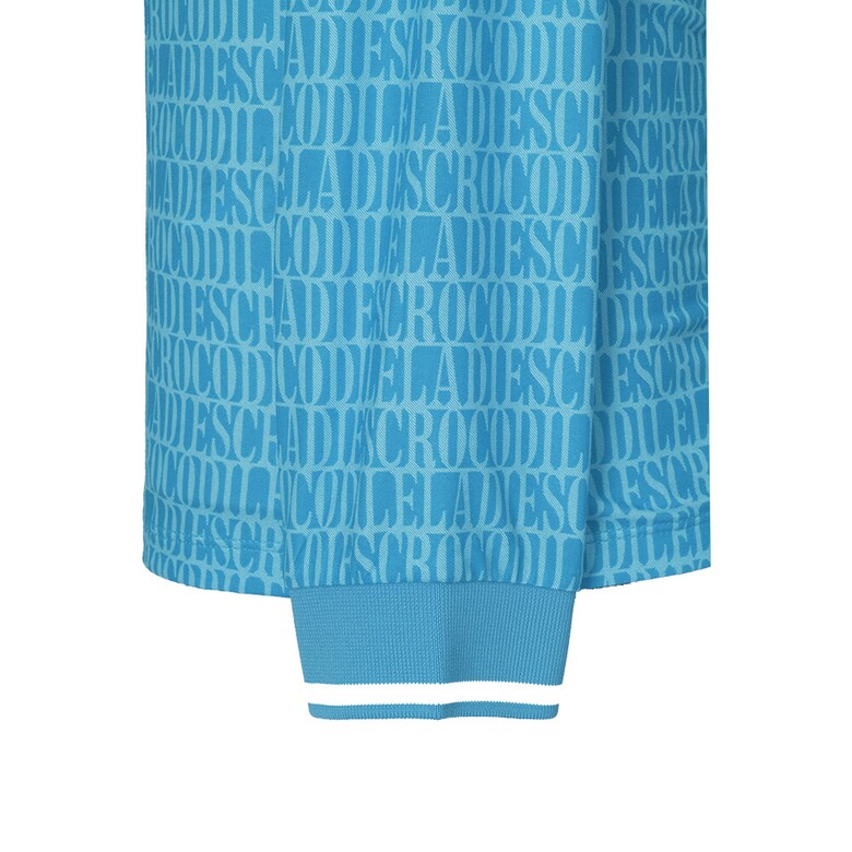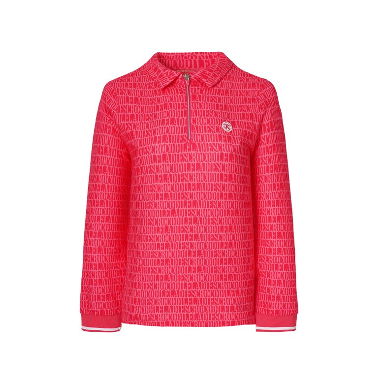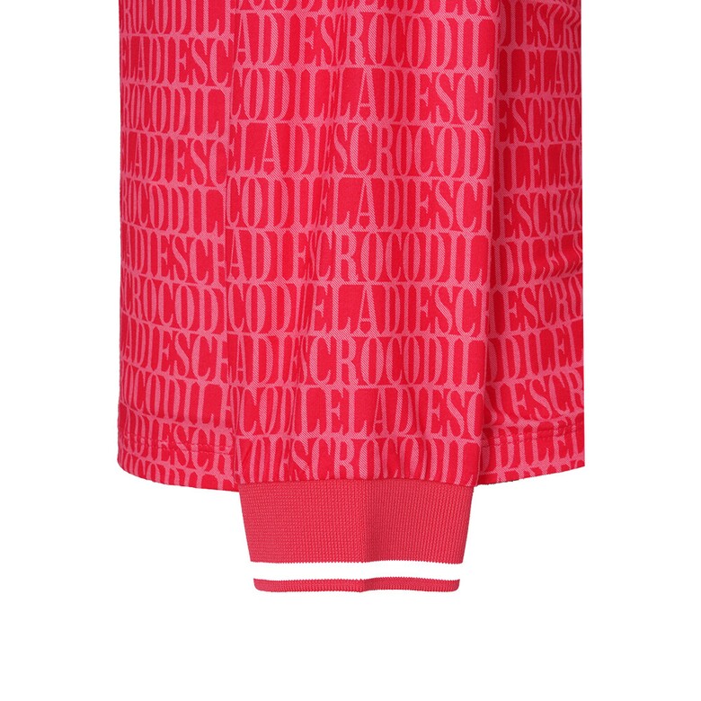 코트나 소재를 사용하여 터치감이 부드럽고 전판 레터링 프린트와 소매 티핑요꼬 배색이 포인트인 집업 카라 티셔츠