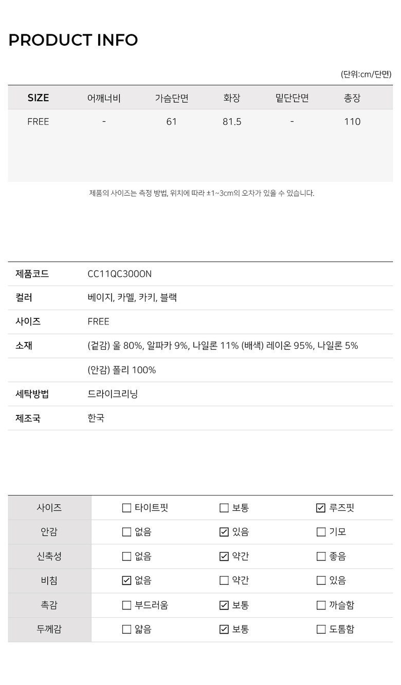 | 3. 치수 | 상품 상세설명 참조 |
