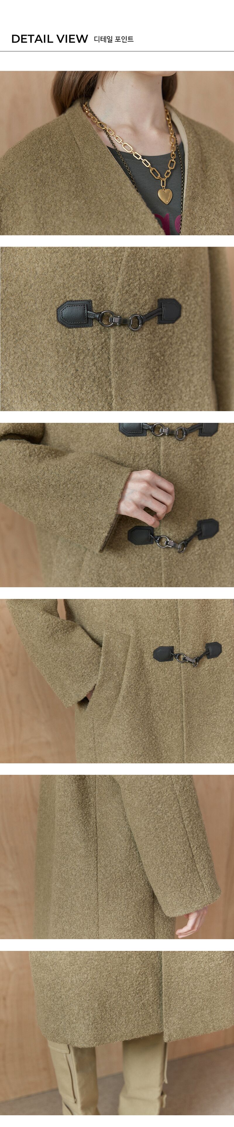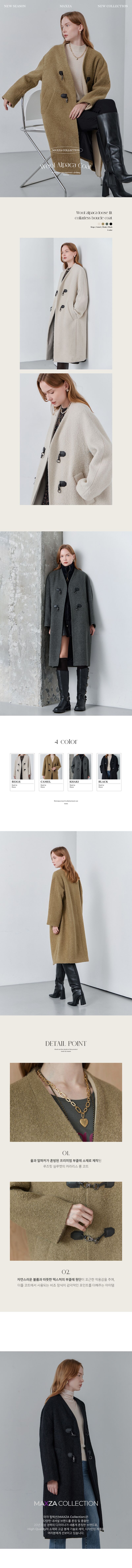 울 알파카 루즈핏 노카라 부클 코트