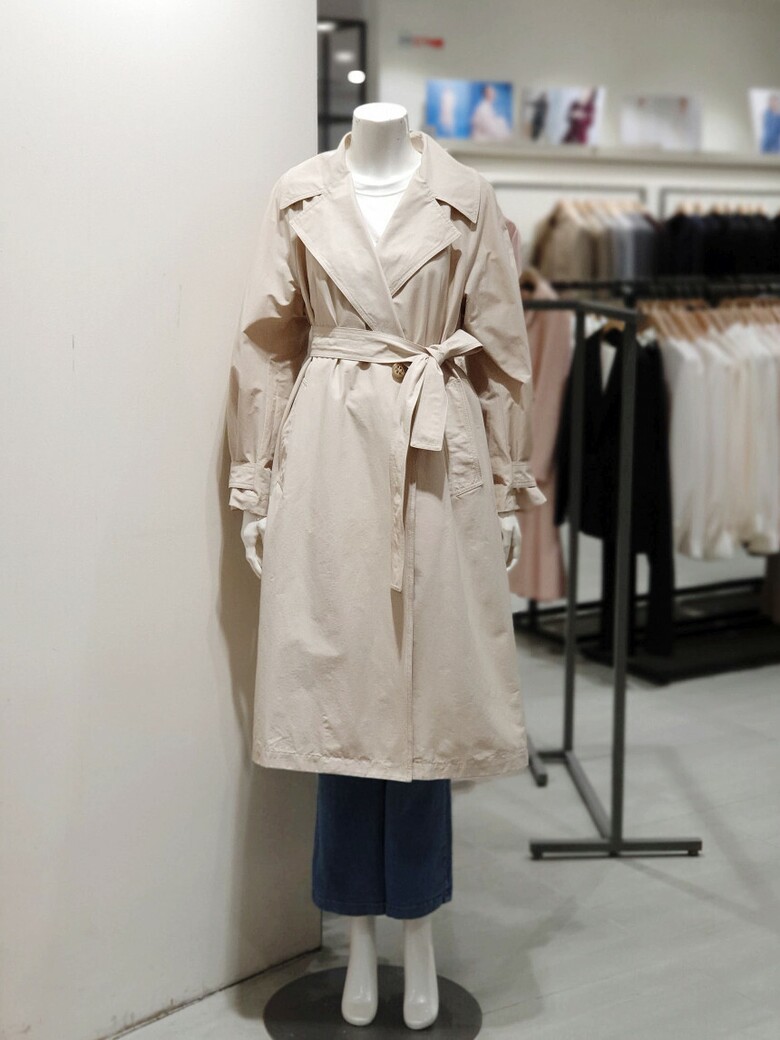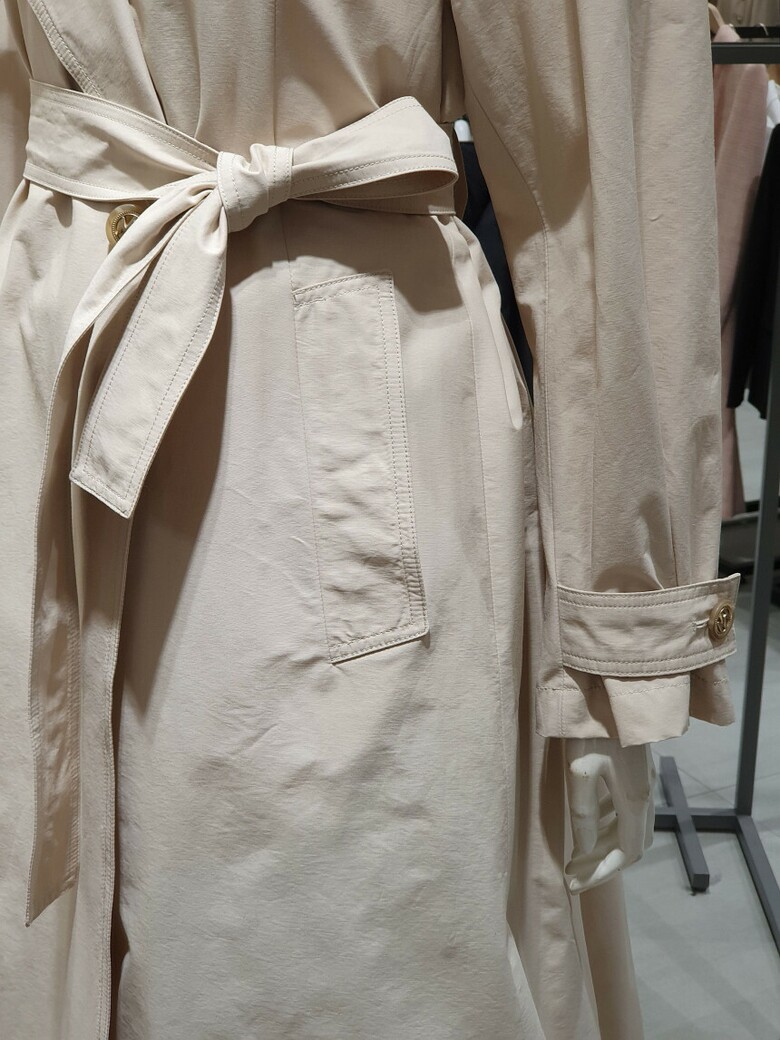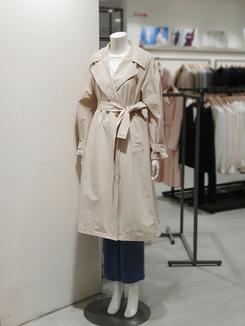 페미닌한 무드의 롱 트렌치코트입니다.