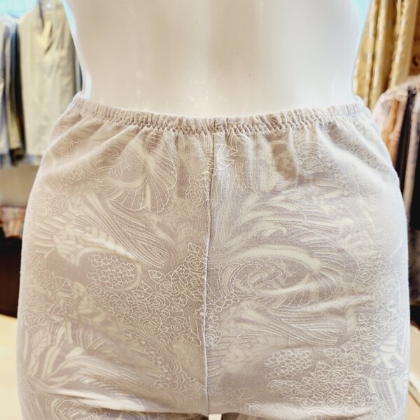 보들보들하면서 신축성이 돋보이는 모달 번아웃 소재를 사용하여 부드럽고 편안한 착용감이 우수한 3부 하의 제품입니다.