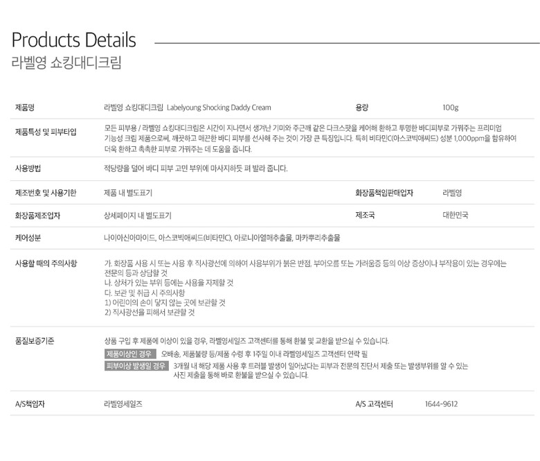 라벨영 쇼킹대디크림100g 바디피부 깨끗하게 관리~결점없이 GOOD! 미백케어/기미,주근깨 완화에 도움!