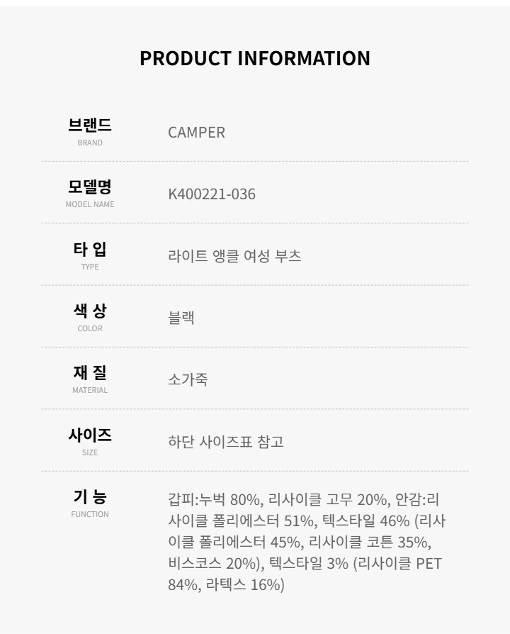 | 4. 제조사 | 캠퍼/MACHO-병행수입 |
