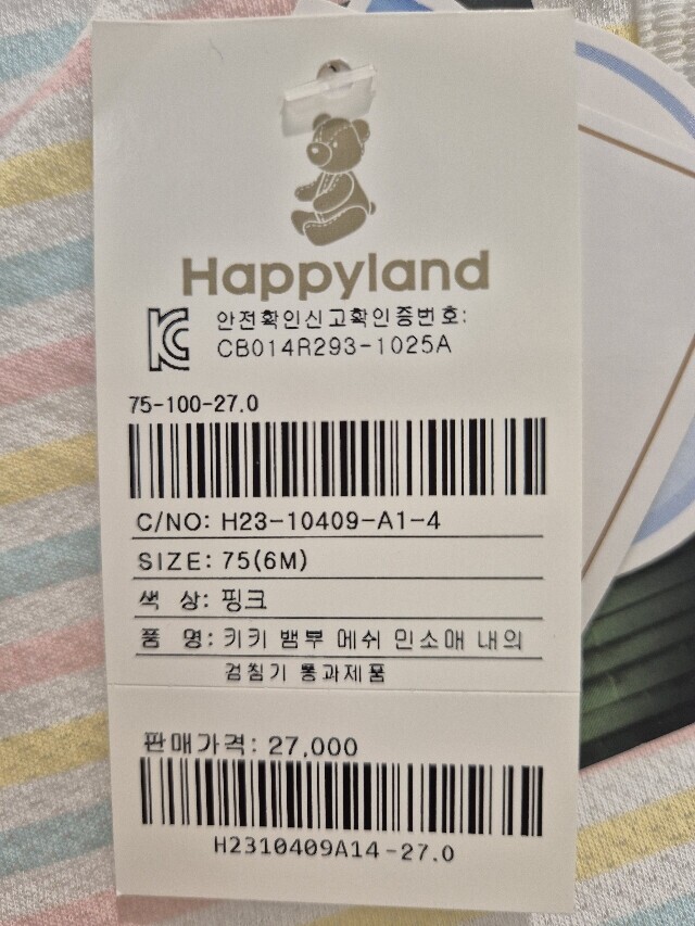 해피랜드 키키 뱀부 메쉬 민소매 내의