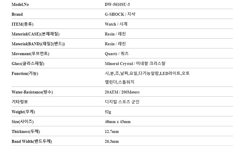 7-2. 시계 - 기능, 방수 등 WATER RESISTANCE - 20ATM(200Meters)