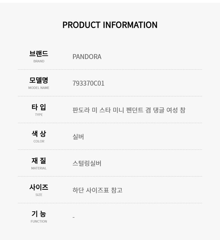 판도라 793370C01 판도라 미 스타 미니 펜던트 겸 댕글 실버 참