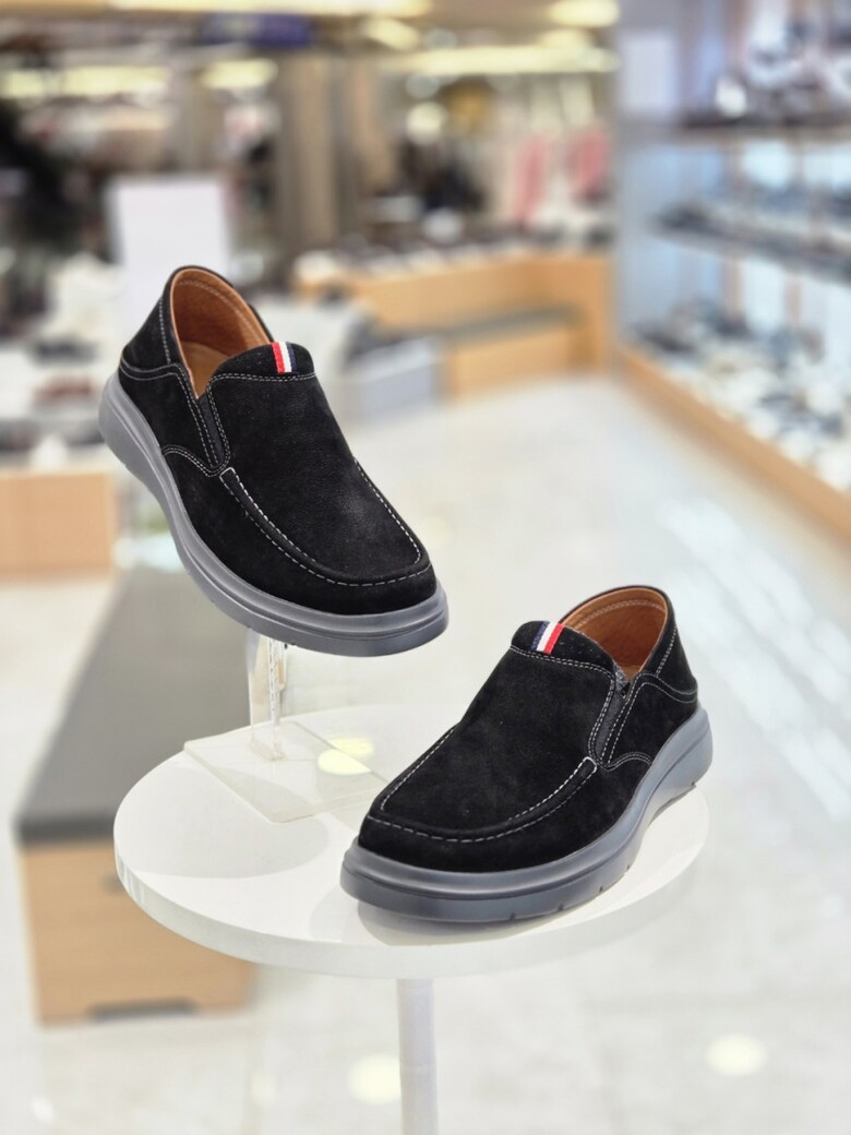 부드러운 가죽(누벅)소재의 남성슬립온으로