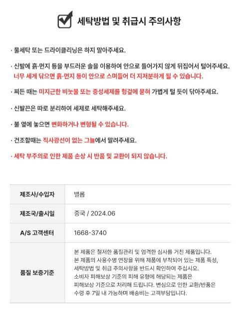 | 6. 취급시 주의사항 | 상품상세참조 |