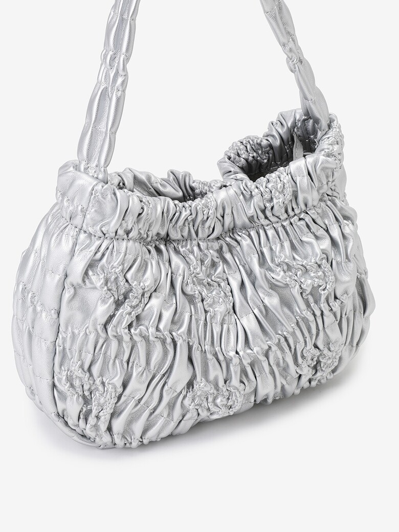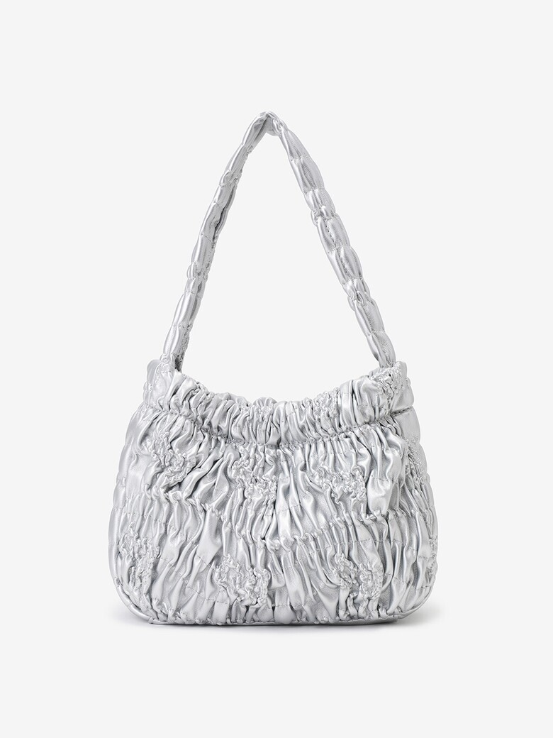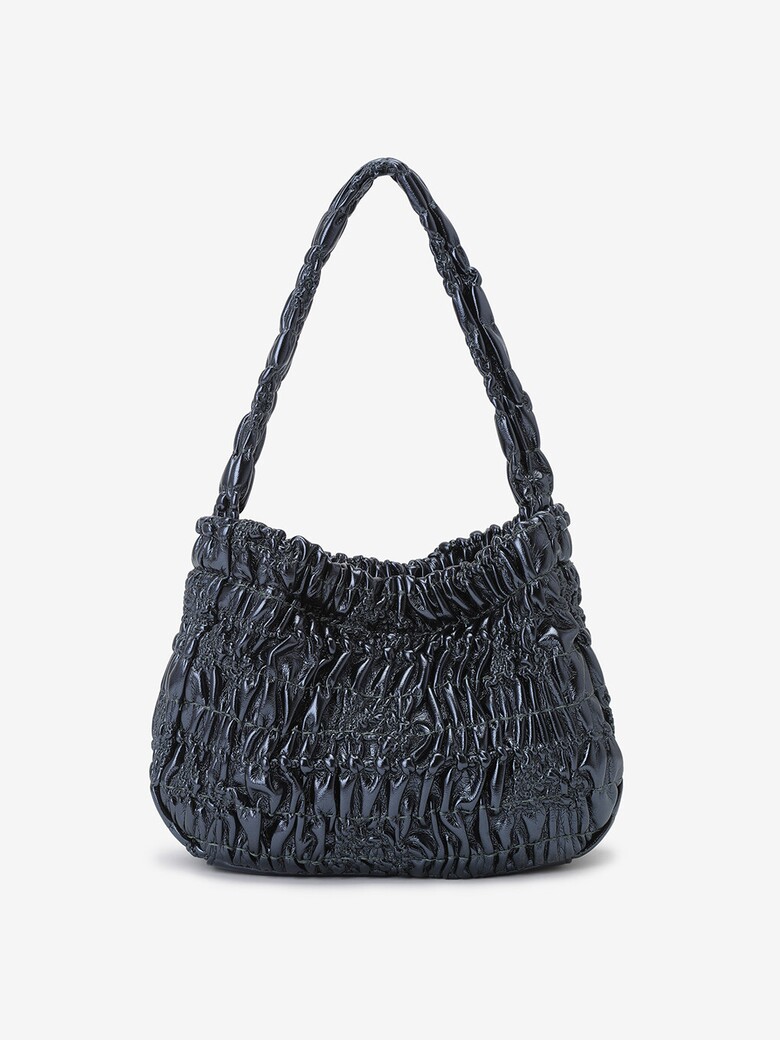 - 글리터리한 외관이 돋보이는 페이크 레더 소재의 크링클 백입니다.
