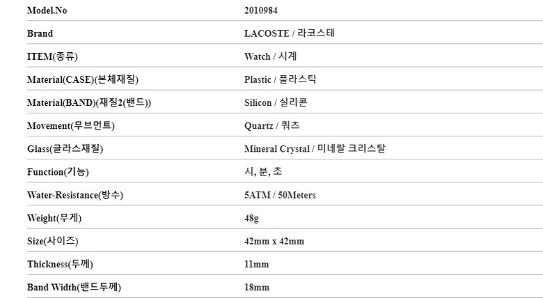 | 3. 제조사 | 라코스테/MACHO-병행수입 |