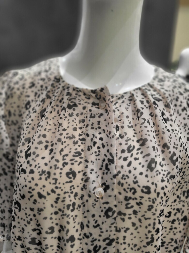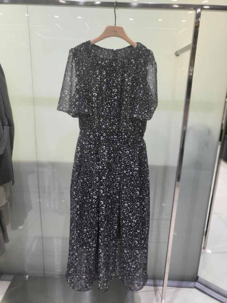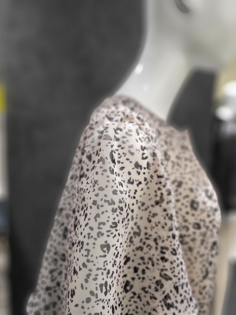 네오파드 패턴이 들어있는 쉬폰 원피스입니다