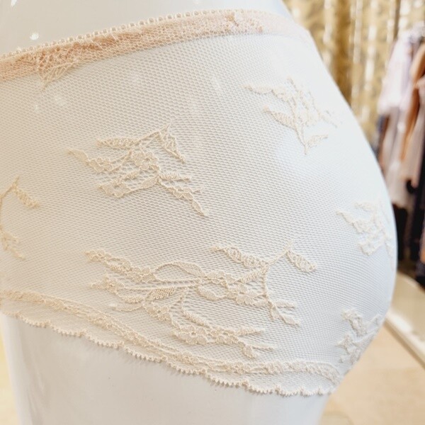 사랑스러운 패턴의 섬세한 자카드 레이스가 컵 상변을 타고 올라와 안정적으로 가슴을 감싸주며 컵 하단의 프릴 포인트가 사랑스러운 무드를 더해줍니다.